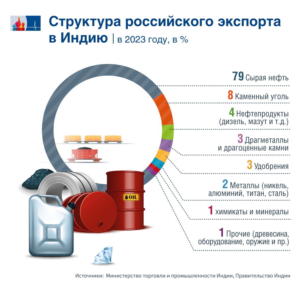 Главным мотивом индийских нефтяных сделок с Россией является сильная зависимость страны от импорта. Индия покрывает от 85% до 90% своей потребности в нефти за счет импорта. Значительная часть потребителей – частные нефтеперерабатывающие заводы, которые перерабатывают нефть, преимущественно в топливо. Часть российских нефтепродуктов, переработанных в Индии, продается в Европу в виде бензина, дизеля и мазута. До недавнего времени конечный продукт, переработанный на индийских НПЗ, не считался российским. Ситуация изменилась 18 июля с принятием Евросоюзом 18-го пакета санкций против России. Впервые в санкционный список был включен индийский НПЗ «Наяра», расположенный в западно-индийском штате Гуджарат. Российской нефтяной компании «Роснефть» принадлежит 49,13% акций «Наяра Энерджи».