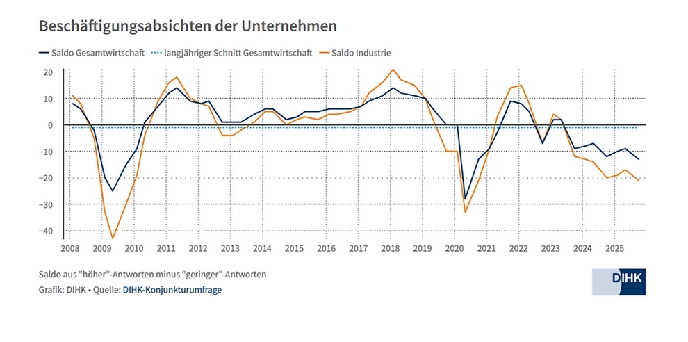 In deutschen Unternehmen wächst die Sorge vor einer zumindest schleichenden Deindustrialisierung in Deutschland. Das ergibt sich aus der jüngsten Konjunkturumfrage der Deutschen Industrie- und Handelskammer (DIHK), bei der in diesem Herbst 23.000 Antworten aus 79 Industrie - und Handelskammern ausgewertet wurden. Die Befragung zeigt, dass die Zukunftssorgen der Unternehmen vielfältige innerdeutsche Gründe haben, aber auch durch weltpolitische Vorgänge genährt werden. Die Herbstumfrage der DIHK gilt wie auch die Frühjahrsumfrage als Stimmungsbarometer für die Befindlichkeit und die Aussichten der deutschen Wirtschaft.