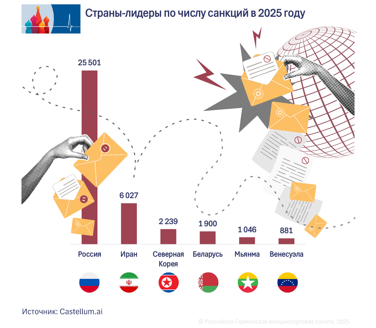 С февраля 2022 года Евросоюз принял в общей сложности 18 пакетов санкций, которые затронули практически все отрасли российской экономики – от банковского сектора и экспорта энергоносителей до доступа к технологиям и международной торговли. По числу введенных против нее ограничений (более 20 тыс.) РФ на сегодняшний день занимает первое место в мире.