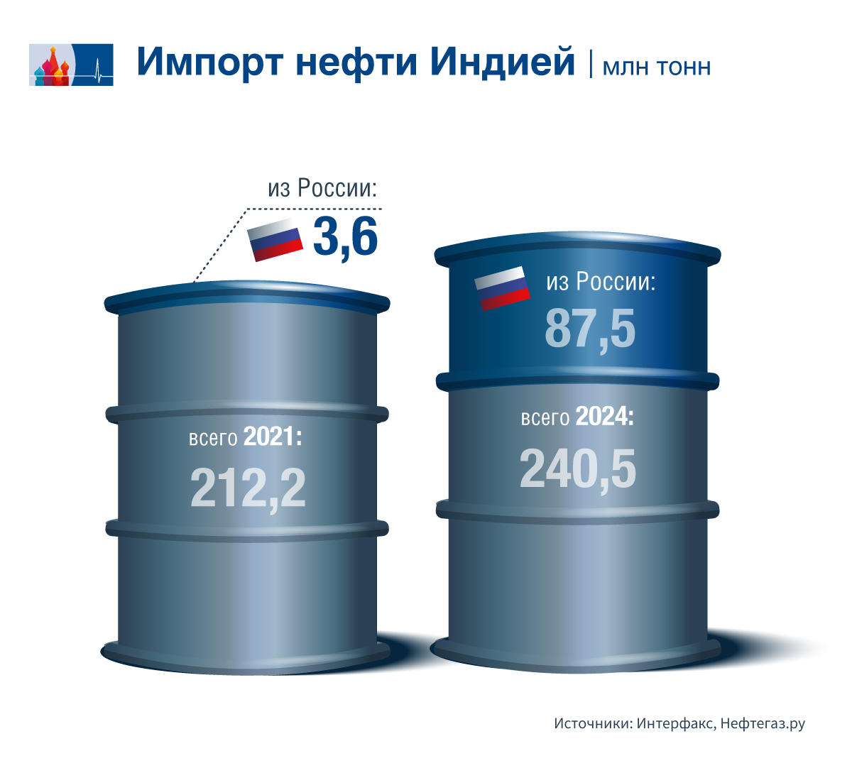 По состоянию на февраль 2022 года на российские поставки приходилось всего 2% от общего объема импорта нефти в Индию, однако уже к декабрю того же года доля России выросла до 25%. А еще через год доля России в индийском нефтяном импорте достигла 39%. В мае 2025 года Индия закупила российской нефти на 4,2 млрд евро. Таким образом, всего за два года Россия превратилась в крупнейшего поставщика нефти в Индию. Основной причиной стала сильная зависимость индийской экономики от импорта черного золота, но большую роль также сыграли и обусловленные санкциями скидки на российскую нефть.